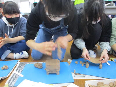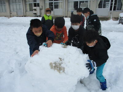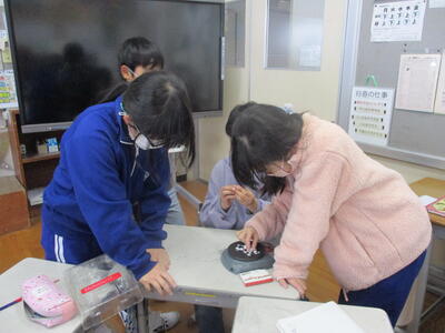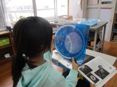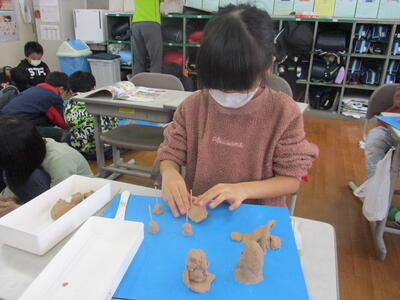 2023年1月11日 11時56分1、2年生のブロック体育は、「雪上鬼ごっこ」で、元気に体を動かしていました。3年生の図工は「ねんどマイタウン」という単元で、オリジナルの町を粘土で作っていました。4年生の理科は「冬の星」について星座早見板を使って学習していました。