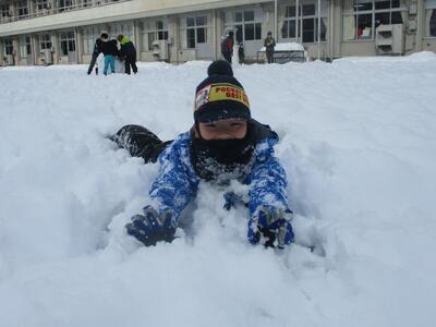 2022年12月20日 10時58分週末から降り続いた雪で、学校のグランドはあっという間に白銀の世界になりました。子供たちにとっては素敵な遊び場です。久しぶりの雪の感触を楽しんでいます。