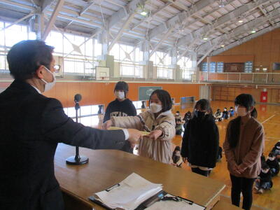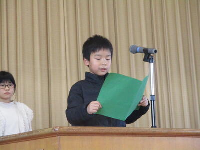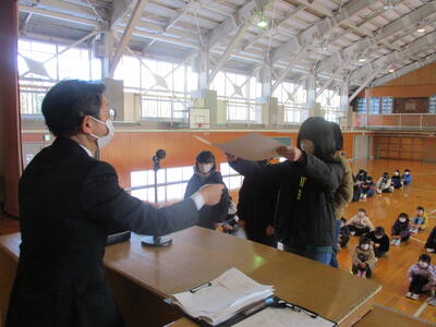 2022年12月23日 12時16分82日間の2学期が終わりました。終業式では、校長先生から3つの約束(「お手伝いをしよう」「けがや事故に気をつけよう」「今年一年がんばりたいことを決めよう」)の話がありました。その後、1、3、5年生の代表児童の作文発表と各種コンクールの表彰を行いました。
