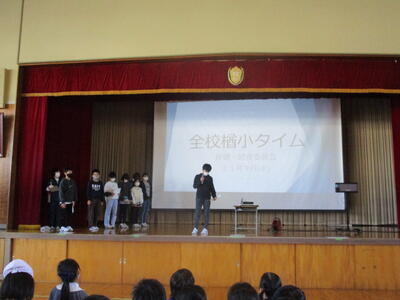 2022年11月9日 16時09分今日の全校楢小タイムは、保健・給食委員会の「歯のクイズにチャレンジ」でした。○×問題と選択問題の計7問の出題でした。内容は、むし歯の原因や正しい歯のみがき方など、歯について学ぶ機会となりました。これからも一生使っていく歯を大切に!