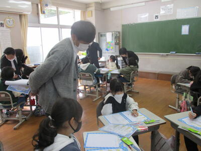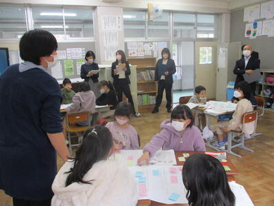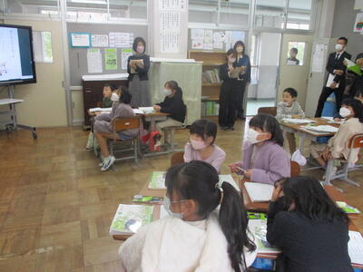 2022年10月25日 15時10分郡内の小学校からたくさんの先生方が来校され、2年生の授業を参観いただきました。国語科の「おもちゃのつくり方を説明しよう」という単元です。子供たちは、これまで学んだことを生かして、どのようにすれば「相手に伝わりやすい説明」になるかを考えていました。
