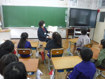 2022年10月26日 12時09分朝の読書タイムに読み聞かせボランティアの室井さんに来校いただき、2年生に「サーカスのライオン」と「さる・るるる」を読み聞かせしていただきました。子供たちは熱心に耳を傾け、物語の世界に入り込んでいました。