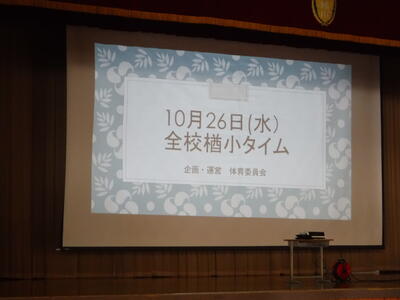 2022年10月26日 15時23分体育委員会の企画・運営による全校楢小タイムが行われました。11月・12月のパワーアップタイムで実施する「楢小ストレッチ」を、体育委員会の児童の動きを手本に全校生で行いました。体をしっかりと伸ばすことで、気持ちのいい汗を流しました。
