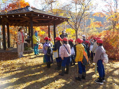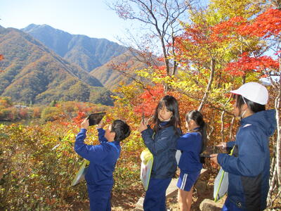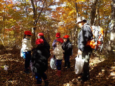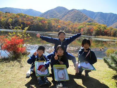 2022年10月27日 16時52分森林環境学習として下郷町の観音沼を散策してきました。当日は晴天に恵まれ、青空と紅葉が生み出す素晴らしい観音沼の景色を見ることができました。現地では、NPO法人森林野会の方々にガイドをしていただき、観音沼に生えている木や植物についてたくさん学ぶことができました。散策後は集めた木の枝や木の実を使って「木の枝クラフト」を作りました。どの子も素晴らしい作品が出来上がりました。