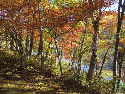 2022年10月27日 07時43分秋の観音沼森林公園に行ってきました。最高の秋晴れの中、山を彩る紅葉を見ながら、観音沼を観察しました。春に訪れた時の観音沼の様子との違いを感じ、タブレットで写真を撮りました。自然の美しさに感動し、下郷町の素晴らしい自然を身体で感じることができました。