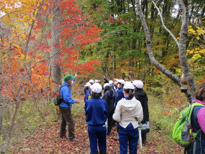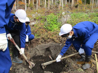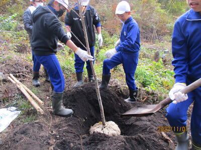 2022年11月7日 13時03分11月1日、下郷町の大沢地区で森林環境学習を行いました。森の案内人の小椋さんと石塚さんに教えていただきながら、「ヤマボウシ」「オオヤマザクラ」の2本を植えました。また、散策しながら、森のことをいろいろと教えていただきました。下郷町には素敵なところがたくさんありますね。