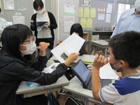 2022年6月7日 13時29分5年生で研究授業がありました。「みんなが過ごしやすい町」について調べたことをまとめます。国連で採択されたSDGsの17の目標から、自分が大切だと思うものを一つ選びレポートにまとめます。本時は、友達と読み合い、助言しあう時間でした。タブレットを効果的に活用しながらレポートにまとめます。