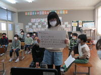 3月1日に6年生を送る会と鼓笛移杖式を行いました。当初の予定では対面式でしたが、密を避けるためオンラインでの開催となりました。制限された中でしたが、5年生の「先生方に関する○×クイズ」、3・4年生の「似顔絵プレゼント」、2年生の「招待状と感謝のメッセージ」、1年生の「感謝の色紙」など、工夫を凝らした内容で6年生への感謝の気持ちを伝えることができました。