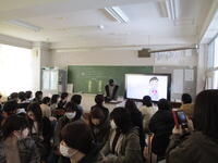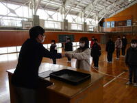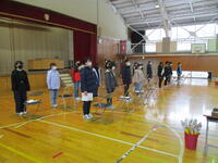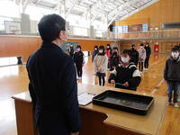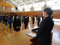 3月2日の2校時に、第1回目の卒業式全体練習を行いました。密を避けるため、卒業生は体育館で練習を行い、在校生はその様子を各教室のスクリーンで見ながら取り組みました。
