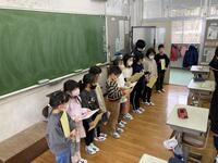 「6年生を送る会」に向けて、在校生のみなさんで準備してくれた色紙を、1年生が代表して6年教室に届けてくれました。温かい言葉が詰まった色紙を見て、6年生もとても嬉しそうでした。卒業まで残り12日。一日一日を大切にしていきます。