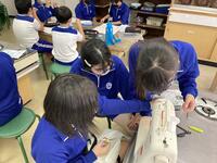 2021年9月22日 07時39分家庭科の学習で、バッグの製作をしています。友だちと協力しながらミシンで縫っています。昨年度よりさらに丁寧に縫うことができるようになっています。完成が楽しみです。