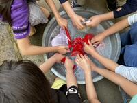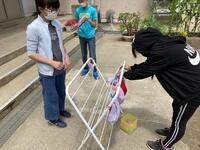 2021年7月13日 15時12分家庭科の学習で、この時期よごれやすい紅白帽子の手洗い洗濯をしました。水の量や洗剤の量を調整してしっかり洗い、すすいでしぼり、形を整えてから干しました。感想をシートにまとめ、実習のふり返りまで行いました。