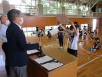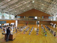 始業式では、校長が「いつもそばに友達がいることを忘れないように」という話をし、みんなで安心して行事や勉強に取り組みむよう子どもたちに伝えました。