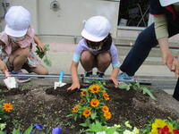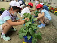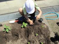 2021年6月25日 16時32分1年生は、生活科の学習でアサガオを育てています。順調に育ってきたので、みんなで学年花壇への植え替えをしました。きれいな花を咲かせるのが楽しみです。他の学年花壇にも様々な花や野菜が植えられています。ご来校の際は、少し足を止めてご覧ください。