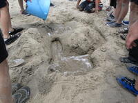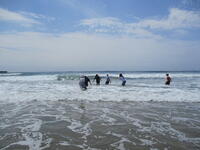 2日目は、四ツ倉海岸へ移動し、海での活動を満喫しました。体全身で波を感じたり、海の水をなめて塩の味を感じたりしました。砂の芸術では、班ごとに作品を作り、みんなで鑑賞し合いました。
