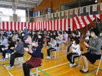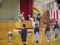 2021年4月8日 08時17分今年度は11名の1年生を迎えました。新入生呼名では、みんな大きな声で返事をし、式中の姿勢も、手を膝の上に置き、背筋をピーンと伸ばし、大変立派でした。この11名の子どもたちのこれからの成長が楽しみです。