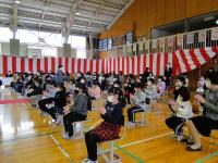 門出の言葉では、マスク越しではありましたが、一つ一つの言葉や歌に思いが込められ、素晴らしい時間となりました。最後の卒業生の歌「最後のチャイム」のピアノの前奏が流れると、空気感が変わり、歌い終わった時には、会場全体が感動に包まれていました。