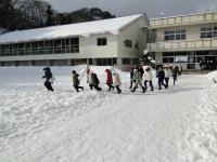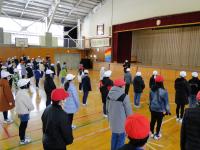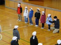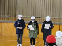 非常ベルの後、放送に耳を傾け、先生の話をきちんと聞き、真剣な表情で雪のある校庭へ避難した子どもたちは、避難後、体育館へ移動し、振り返りの学習を行いました。各学年の代表による感想発表では、「真剣に避難できたのでよかった。」「春や秋よりもしっかり避難できた。」「放送をよく聞いて“お・か・し・も”を守って避難できた。」などの発表がありました。