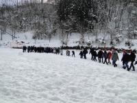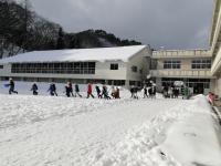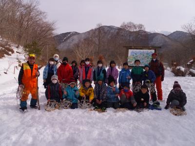この日の学習は、冬の観音沼を、かんじきを履いて歩いて観察することで、四季の変化を感じるとともに、下郷町の森林や自然の様子を体感してくることをねらいとして行いました。