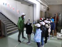 教室へ戻る際、防火扉を通る体験もしました。防火扉には段差があり、進行方向によっては扉を押して通るのではなく、引いて通る場合もあることなどを体験しました。そして防火扉は、校舎から外へ逃げる場合には「押す」ことや、ここはシャッターが閉まるところだということを学習しました。