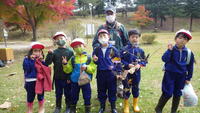 この日は、森の案内人の方々のご案内していただきながら、ふるさと公園を散策し、秋の様子を教えていただいたり、どんぐりなどの木の実を拾ったりして、秋の自然に親しみました。