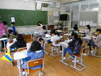 「せんせぇ~」「せんせ~」とあちらこちらからお呼びがかかり、担任の先生に教えてもらうと、安心して活動を続ける1年生の姿がありました。