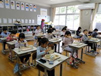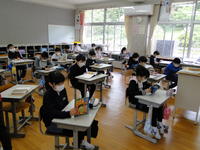 2020年5月20日 09時47分登校後、身支度を整えると、学校生活のリズムを取り戻すために、日課表に合わせてすぐに読書を始める学年、朝の会を行い、休み中の様子を確認しながら一人一人の健康状態を把握している学年など、学校再開の初日は様々でした。