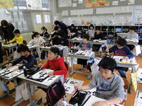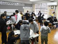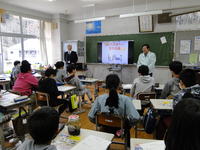 また本校では、福島県教育委員会の指定を受け、「学びのスタンダード」推進事業に取り組んでおり、4年・5年の算数科において、学びのスタンダード推進教師による教科担任制を進めてきました。今日の授業参観では、4年生において、担任との2人体制によるT・T授業に加え、電子黒板を使用した授業を参観いただきました。今、各学年で同時期に進めている「マット運動」の授業を、代表して行っている学年もありました。