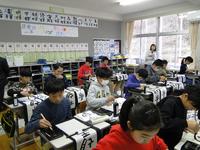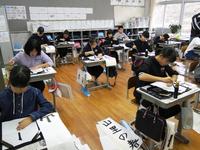 さすがは本校の5・6年生です。書いた後、お手本と見比べ、自分の課題を見つけ、その課題を意識して熱心に書く姿が見られました。また、5・6年生の落ち着いた雰囲気が見られてうれしくなりました。それぞれ60分間の学習に集中し取り組んだことで、一人一人が自分の文字の印象が変わったことを実感している様子がうかがえました。