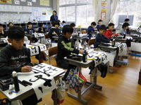 2019年12月6日 14時12分6日(金)、郡山市にある今泉女子専門学校の渡部先生においでいただき、3・4年生を対象に会津もめんを使ったペン立てづくりを教えていただきました。これは、ふくしま職業体験出前講座の一つとして、本校の希望をかなえていただき実現した学習です。実際にもめんを見て、触れて、織物のよさや肌触りを知ってもらい、興味をもってもらうこともねらいとなっています。