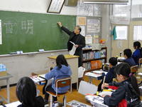 2019年12月4日 12時11分4日(水)、2日(月)に引き続き、本町を代表する書道の第一人者でおられる白石光史先生を招聘し、3・4年生を対象に、書きぞめ指導をしていただきました。