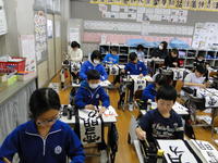 自分の書いた文字を見つめ、課題を見つけ、また繰り返し書くという姿からは、一人一人が精神統一をして自分と向き合っている様子が分かりうれしくなりました。自分の字形が変わってきたことが、本人も我々教師も分かるほどでした。