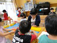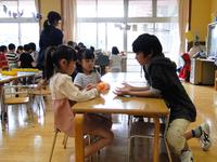 「しもごう保育所」では、園児と一緒に遊んだり粘土遊びをしたりする中で、園児の目線になるように腰を下ろして話を聞くことや笑顔で接することの大切さを、保育士の姿から学ぶ貴重な時間になりました。