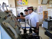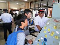 「下郷駅」では、電車で田島駅まで乗せていただき、田島駅の車両基地を案内してもらいました。また、電車の運行の様子や線路の切り替え、電車の信号機を操作する機械を見せてもらいました。普段は入れないところを見せてもらい、駅員の仕事をいろいろと教えていただき、貴重な体験ができました。