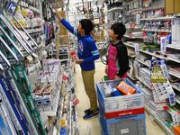 「コメリ」では、様々なジャンルの商品を陳列しながら、どこに何があるのかを覚えていくプログラムを体験しました。ゲーム感覚で楽しみながら活動することができました。また、練習用のレジスターを使い、レジ打ちの体験をさせてもらいました。