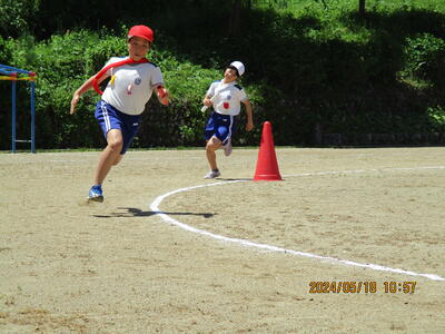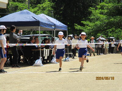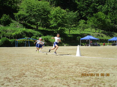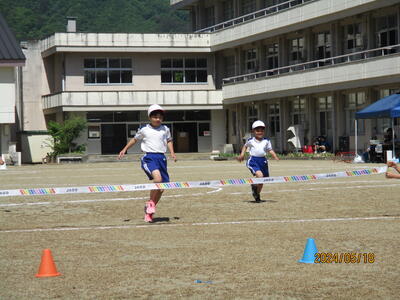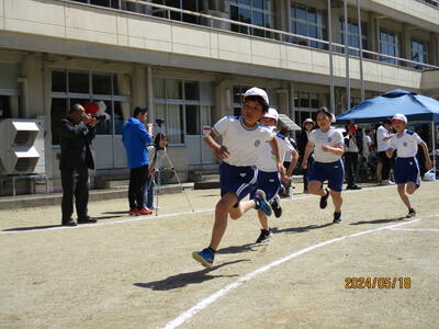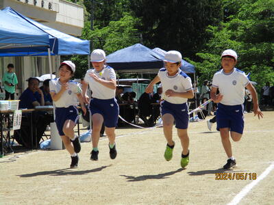 2024年5月18日 14時25分快晴の中、スポーツフェスティバルが行われました。徒競走では、腕を大きく振りながら、ゴールを目指して頑張りました。
