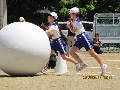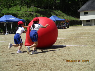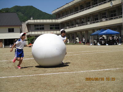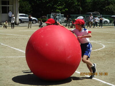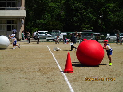 2024年5月18日 14時30分2人1組となり、上手に大玉を転がしました。折り返し地点では、思うようにいかないなど、苦戦しながらも、笑顔いっぱいでした。