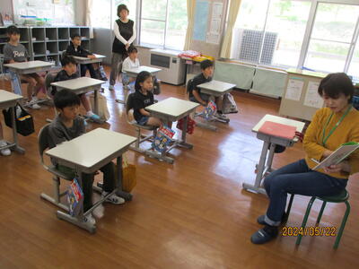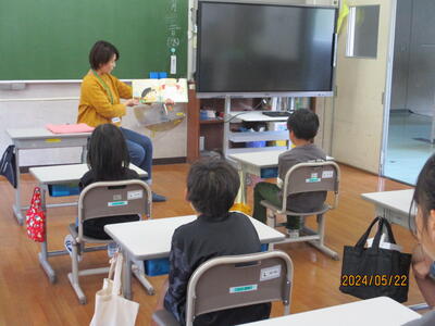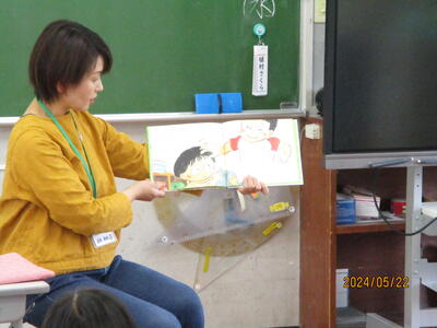 2024年5月22日 09時06分読み聞かせボランティアの渡部さんにお越しいただき、3年生への読み聞かせを行いました。みんなワクワクしながら聞き入っていました。