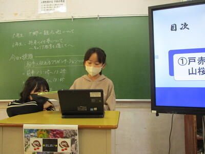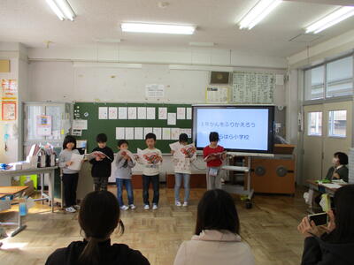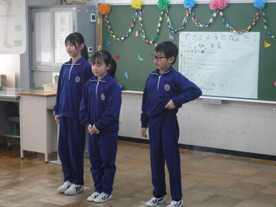 2024年2月29日 15時48分2月29日に、今年度最後の授業参観がありました。将来の夢や総合的な学習の時間で学習したことを、タブレットのスライド等を使って発表したり、縄跳びなどのできるようになったことを発表したりしました。たくさんの保護者の皆様に来校いただき、今年度の子供たちの成長を見ていただくことができました。