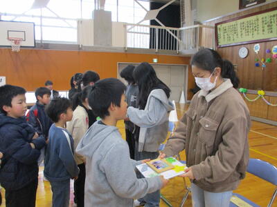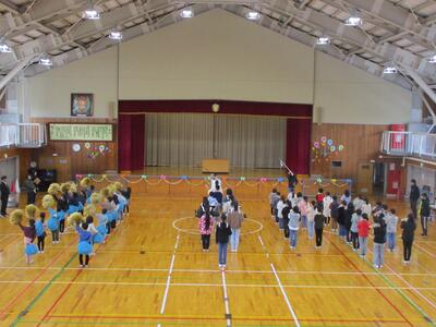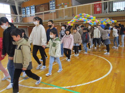 2024年3月1日 12時47分6年生を送る会を行いました。5年生が中心となって企画しました。「色鬼」や「しっぽとり」で6年生と楽しく汗をかきました。その後、縦割り班からの「色紙プレゼント」、在校生からの「感謝のメッセージ」を通して、6年生への感謝の気持ちを伝えました。6年生と一緒に過ごすことのできる日はあと14日です。一日一日を大切にします。