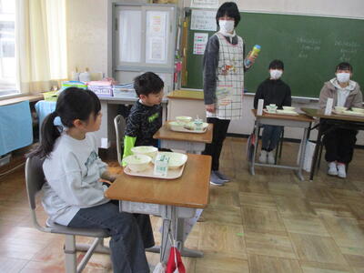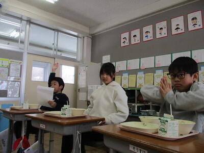 2024年3月5日 14時43分卒業まで13日です。卒業を間近に控えた6年生が、在校生の教室や校長室を訪問し、一緒に給食を食べています。在校生からの質問に答えたり、楽しく談笑したりと、とても幸せな時間です。6年生との素敵な思い出が、また一つ増えました。