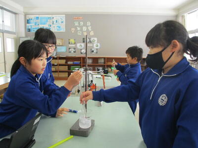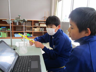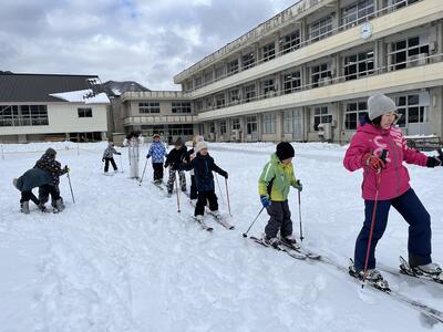 2024年2月1日 12時48分1・2年生は、スキー教室に向けて、校庭で練習をしていました。スキーの着脱やスケーティング、さらに、安全に転ぶ練習をしていました。4年生の理科では、「水のすがたと温度」の単元で、「水を冷やすとどうなるか」の実験をしていました。氷ができる様子を興奮しながら観察していました。