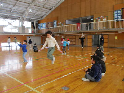 2024年2月7日 12時50分2月のパワーアップタイム(業間の運動)はなわとびです。各ブロックで予定している「なわとび記録会」に向けて頑張っています。上級生が回数を数えてあげる姿や、下級生が上級生を応援する姿はとても良いものです。記録会に向けて、全校生で協力しながら頑張ります!