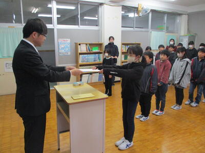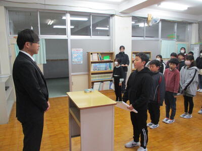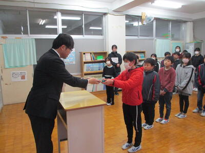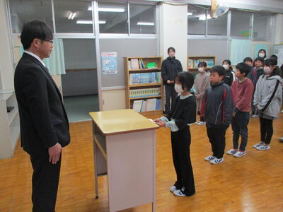 2024年2月21日 14時27分2月21日に、「少年消防クラブ入退団式」を行いました。1年間活動してきた5年生に「期待書」が渡され、来年度活動する4年生に「少年消防手帳」が交付されました。これからも消防クラブ員を中心に火災予防に努めていきます。