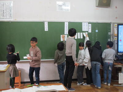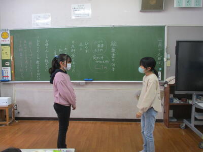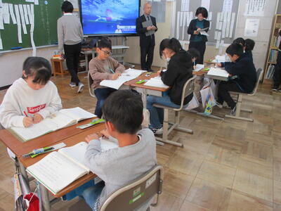 2024年1月23日 14時34分3年生は、道徳科「絵葉書と切手」の学習をしていました。役割演技を通して、友情や信頼について考えを深めていました。5年生は、家庭科「物を生かして住みやすく」の単元で、整理整頓について学習していました。自分の道具箱の中身を整理し、仕切りを作って、きれいに整頓していました。