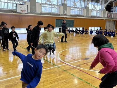 2024年1月24日 15時27分今日の全校楢小タイムは、「長なわ集会」でした。8の字になって学級全員が順番に跳び、3分間で何回跳べるかを競います。どの学級も記録更新を目指して頑張りました。2月末に各ブロックで記録会を行います。あと1ヶ月です。さらに記録を伸ばせるようがんばります!