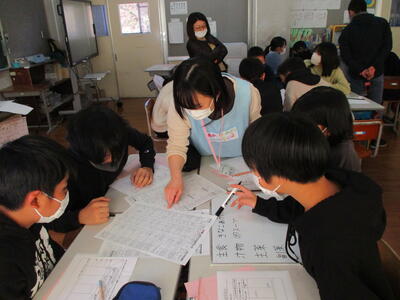 2022年11月18日 16時34分栄養技師の横川先生に来ていただき、食育の授業を行いました。献立を考えるポイントを教えていただきながら、主菜・副菜・汁物を、栄養バランスに配慮しグループで考えました。考えた献立の中から1食が選ばれ、3学期のリクエスト献立になります。どんなリクエスト献立になるのか楽しみですね。