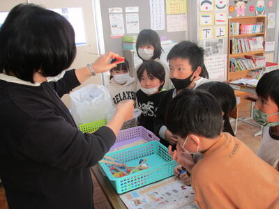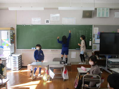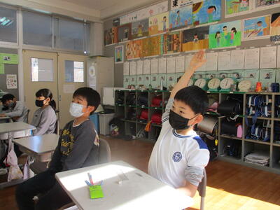 2022年11月25日 11時00分1年生の生活は、割りばしや輪ゴム、まつぼっくりを使って楽しく活動していました。3年生の学活では、係活動を見直し学校生活をより良くするために、自治的な話合い活動をしていました。6年生の図工は「私が感じる和」の単元で、タブレットを使って鑑賞レポートを作成していました。