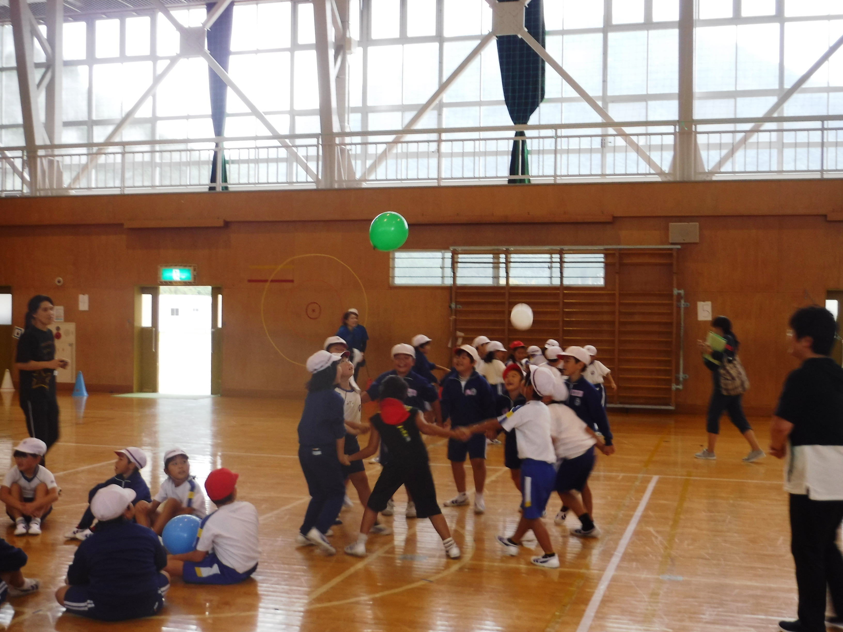 学校ごとのあいさつ・紹介の後、3小学校合同の班ごとにメンバーの自己紹介を行いました。保育所で一緒だった友達もいれば、初めての友達もいる中での自己紹介はちょっぴり緊張していた感じでしたが、江川小学校の中をいろいろと見学したり、風船ゲームなどをしたりする中で、みんな笑顔で交流していました。