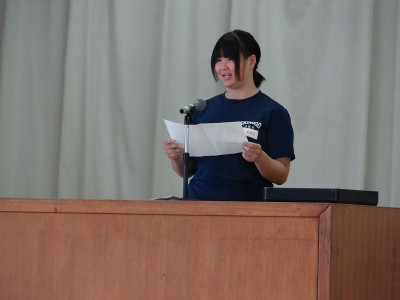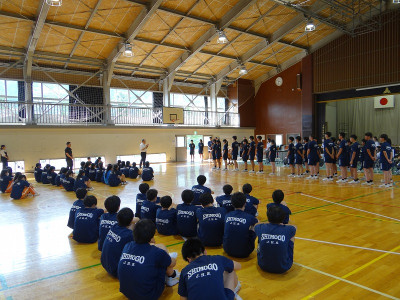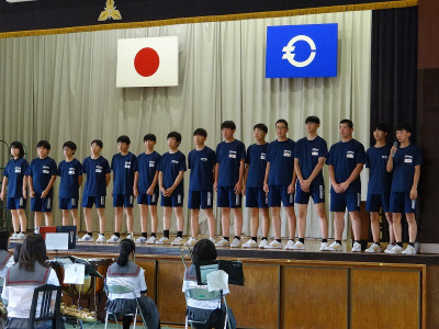 本校の応援団は、各種大会やコンクールなどに出場する生徒たちの壮行会で、全校生の音頭をとって校歌・応援歌・応援演舞を行います。